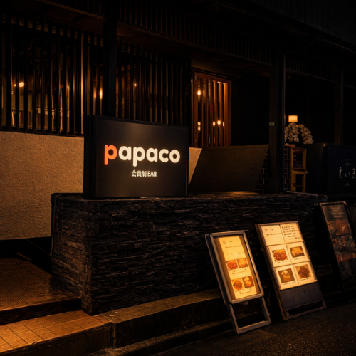 Papacoでは、アプリでマッチングしたユーザーが安心してリアルに出会える場所として**Papaco公式Bar「Papaco Bar」**を運営しています。